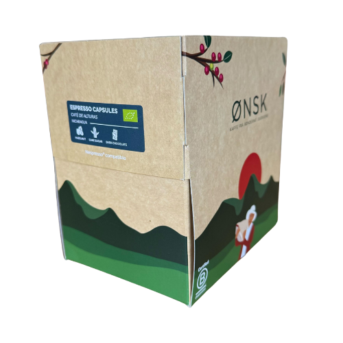 Kaffekapslerne indeholder økologisk specialkaffe af høj kvalitet. Selve kapslen er lavet af et plantebaseret materiale, som er komposterbart.