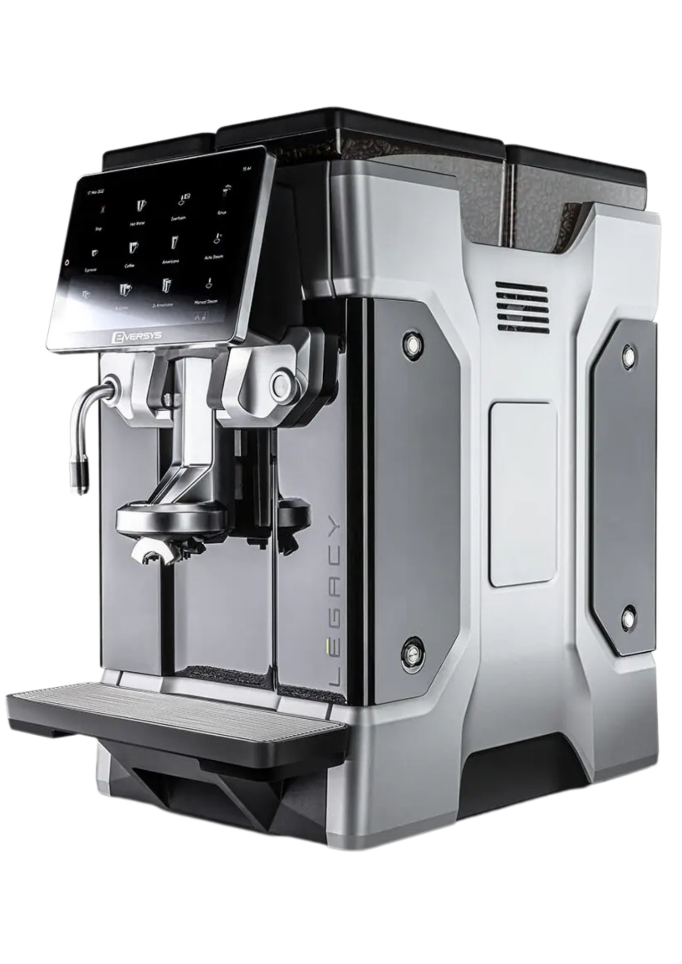 Eversys Legacy er udstyret med energibesparende funktioner, der effektivt opnår den nødvendige vand- og damptemperatur, hvilket reducerer energiforbruget, når maskinen ikke er i brug.